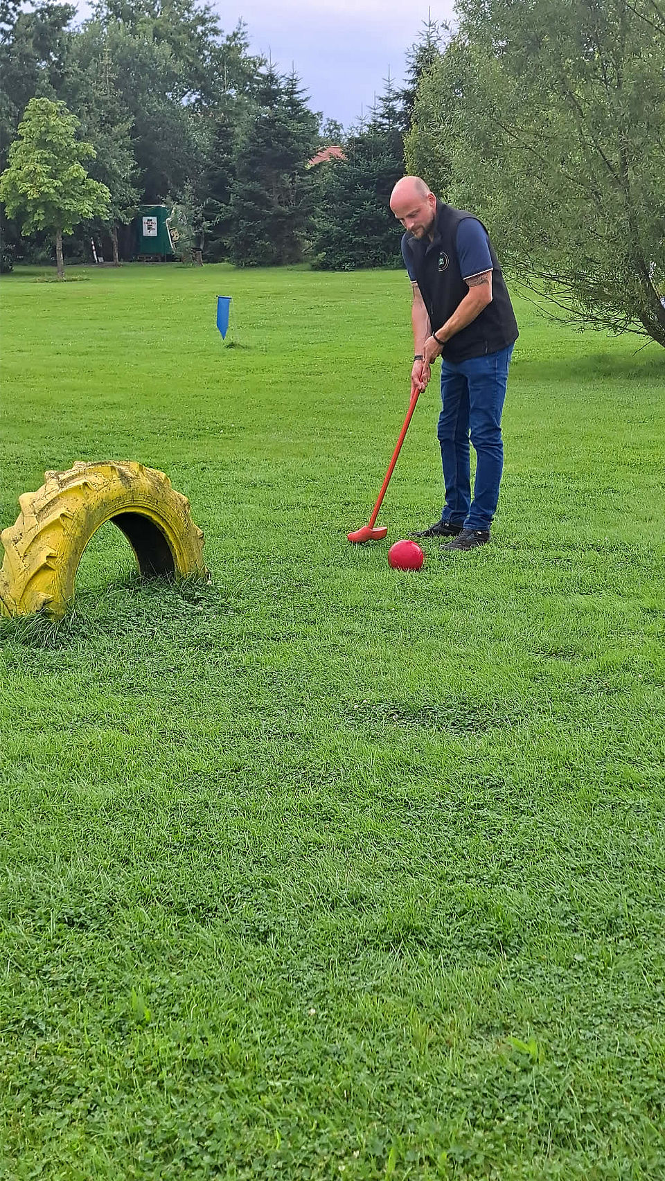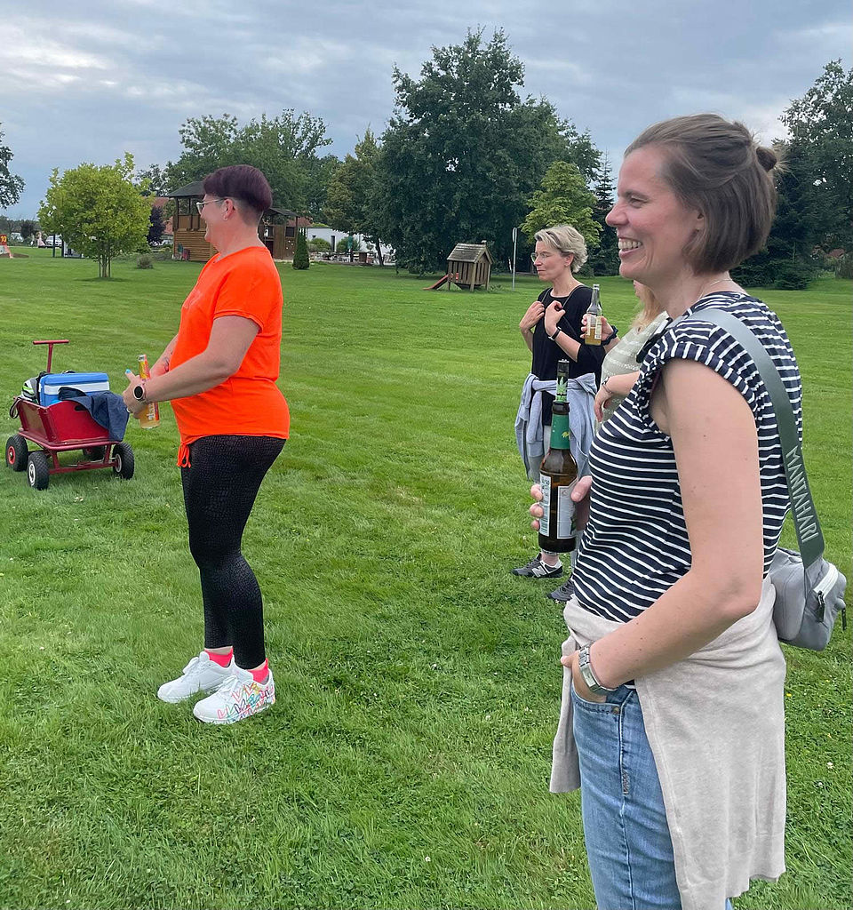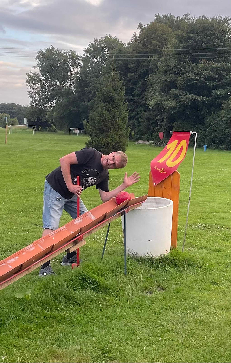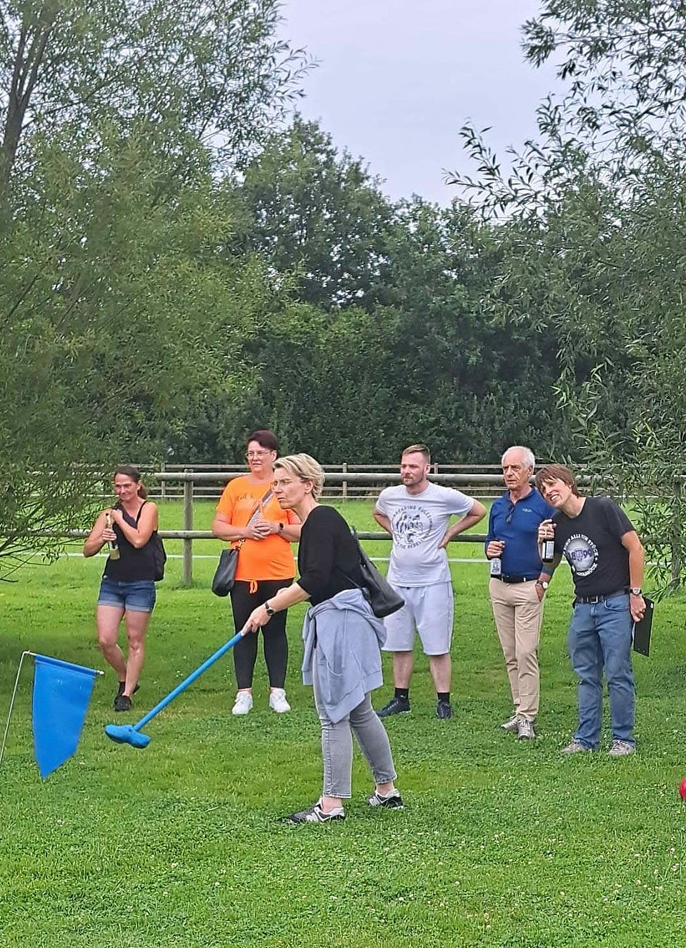 Bei Fußball- bzw. Bauerngolf im Gasthaus Rose in Espelkamp/Vehlage hat das Verwaltungs- und Gebäudewirtschaftsteam viel Spaß und Freude beim Spiel und dem Wettkampf.