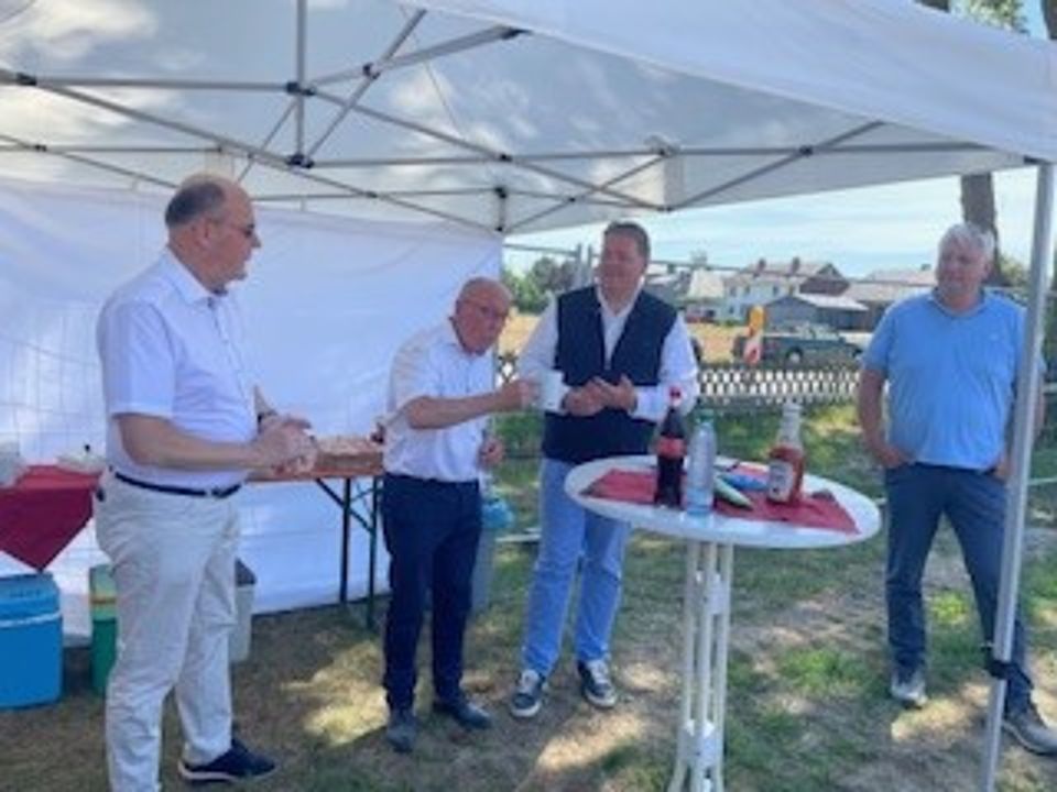 Vertreter des Kreisjugendamtes und der Gemeinde Hille waren zum Spatenstich vor Ort. DRK-Präsident Kai Abruszat und Bürgermeister Schweiß freuen sich, mit dem DRK die Trägervielfalt in der Gemeinde Hille zu erweitern. Kreissozialdezernent Hans-Jörg Deichholz erwähnt in seinen Worten, dass zu wünschen ist, dass das Land NRW die Kita Finanzierung auch zukünftig so absichert, dass Kreise, Städte, Gemeinden und Kita Träger eine qualifizierte Arbeit weiterhin garantieren können.
