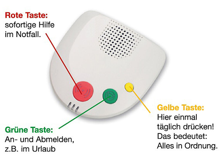 Das Hausnotruf-System kann mit einer Sicherheitsuhr ausgerüstet werden. Ihre Hausnotrufzentrale ruft Sie an, wenn Sie nicht innerhalb einer vereinbarten Zeitspanne per Knopfdruck signalisieren, dass mit Ihnen alles in Ordnung ist.